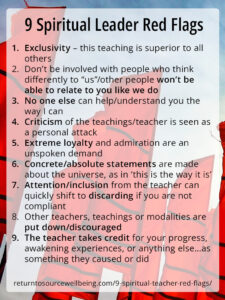 9 Spiritual Teacher Red Flags In by Ambha Amanda Roberts @ Return to Source WellbeingJanuary 17, 2025Leave a Comment